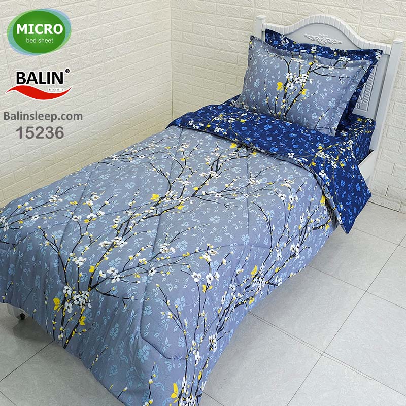 روتختی یکنفره سرمه ای طوسی شکوفه بهاری میکرومعمولی